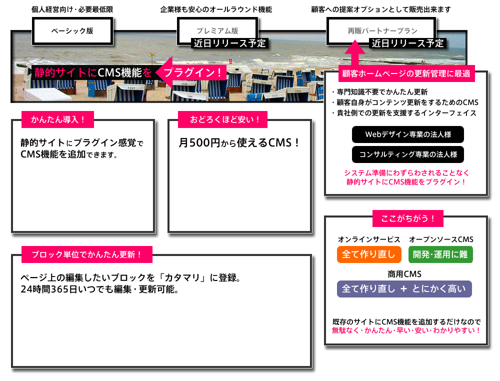 月額500円から使える・プラグイン感覚で導入出来る・かんたんコンテンツ管理システム(CMS)「カタマリマネージャー」